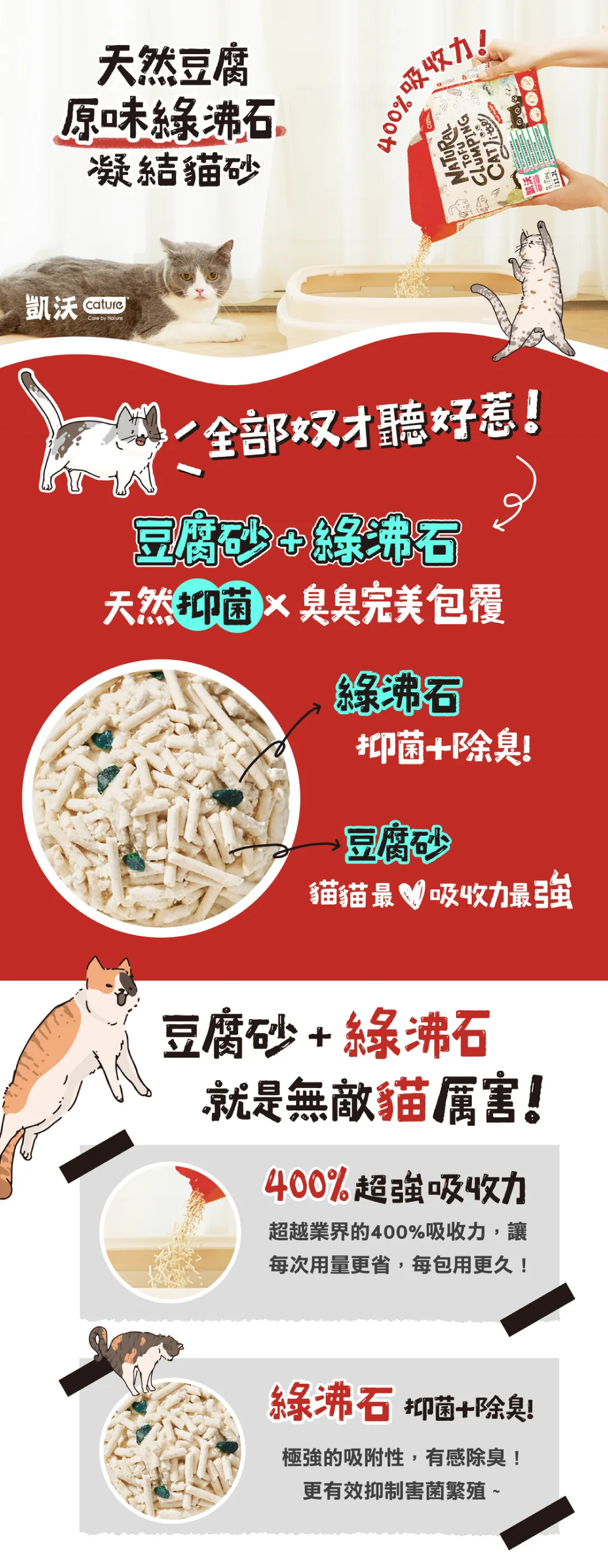 • 天然豆腐原味綠沸石凝結貓砂 7L