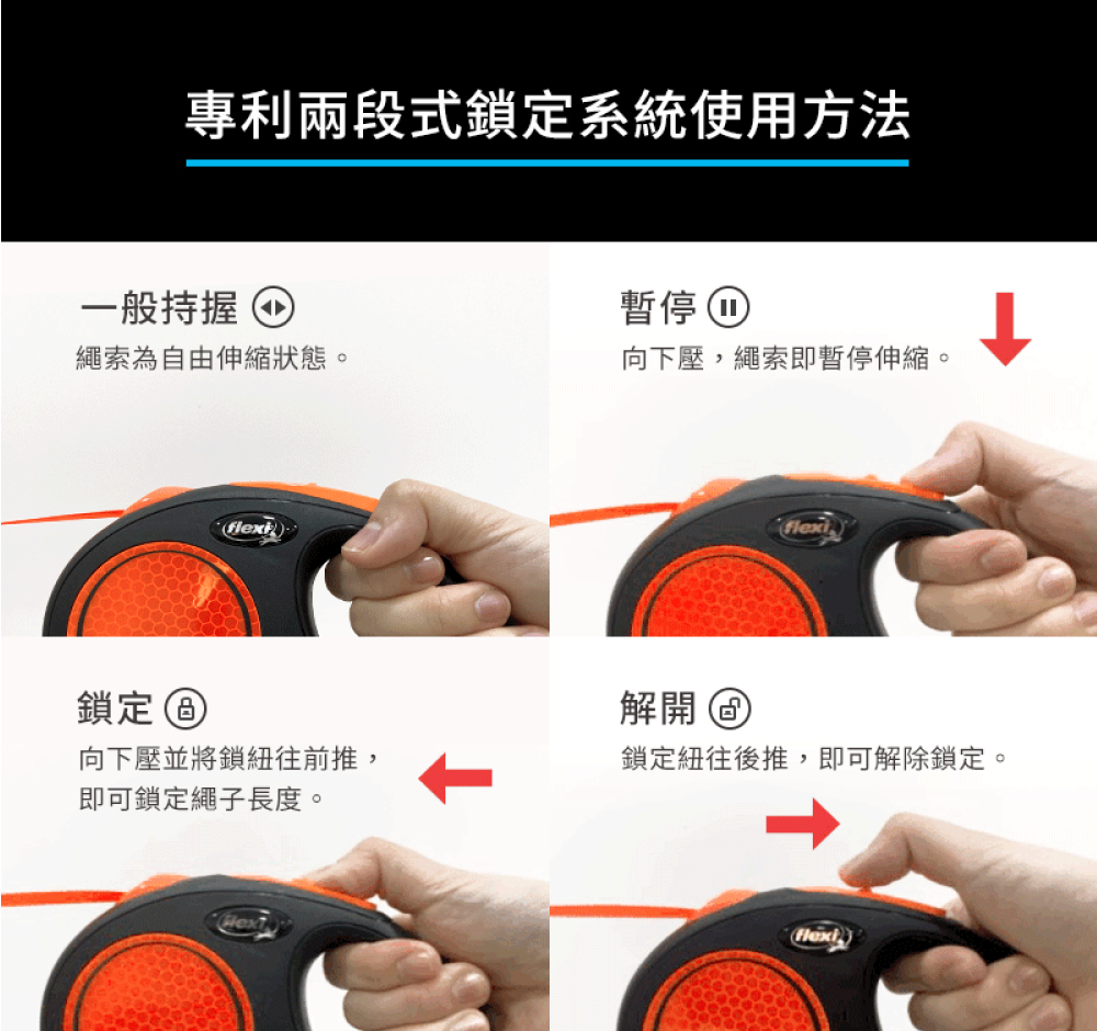 •兩段式鎖定系統,暫停伸縮、固定長度一鍵搞定