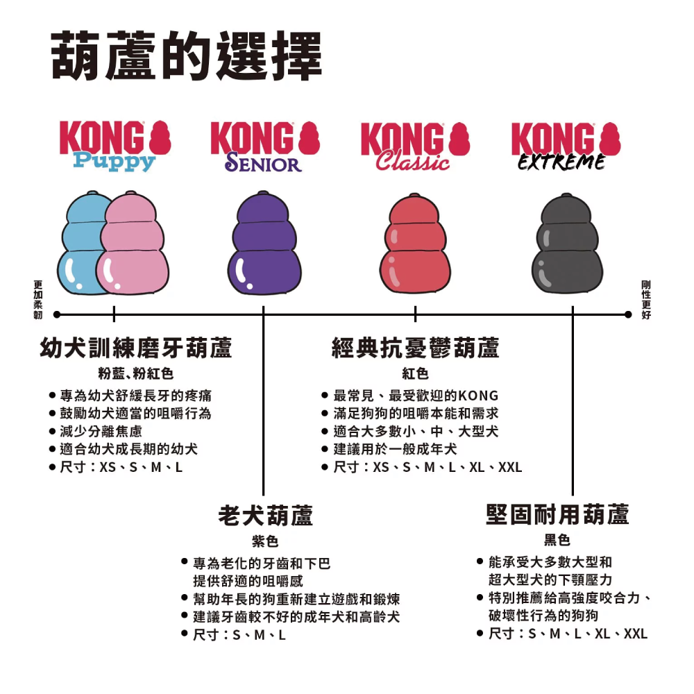 •KONG經典設計葫蘆造型的抗憂鬱玩具,最符合狗狗嘴型