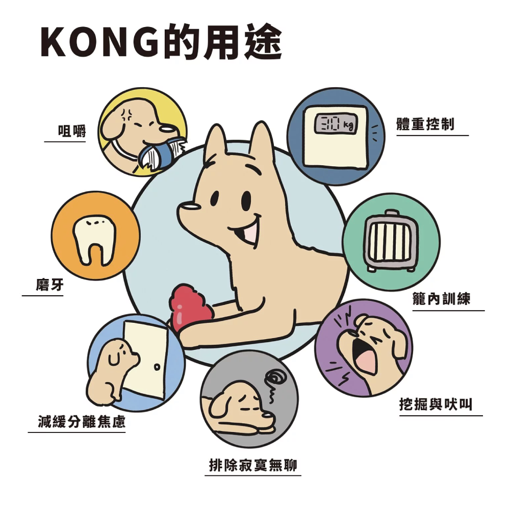 •KONG經典設計葫蘆造型的抗憂鬱玩具,最符合狗狗嘴型