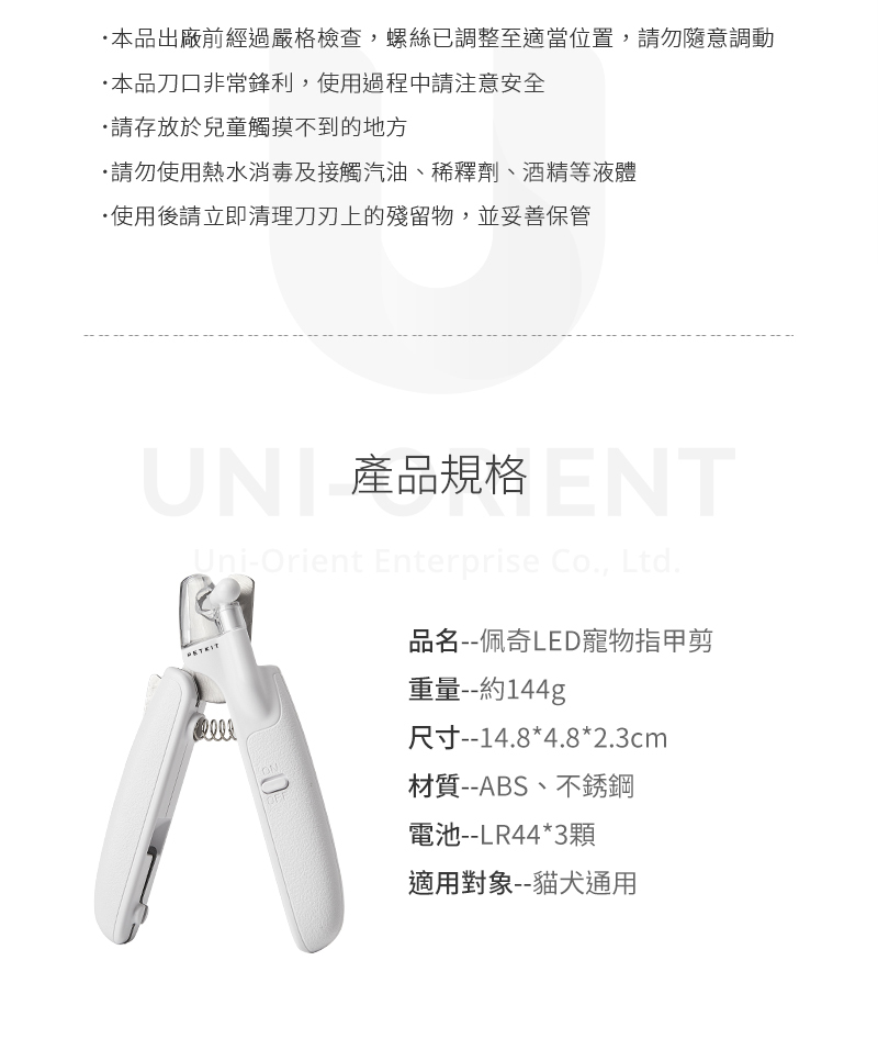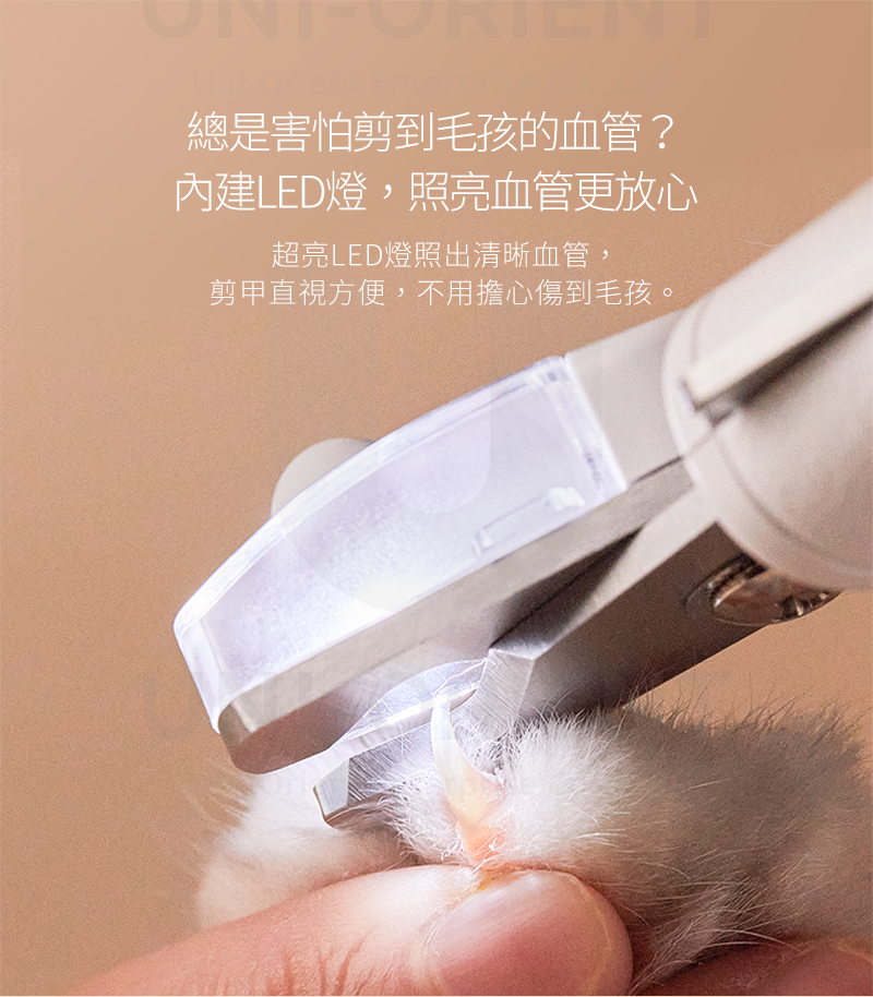 •內建LED燈,輕鬆找到血管,避免毛孩受傷