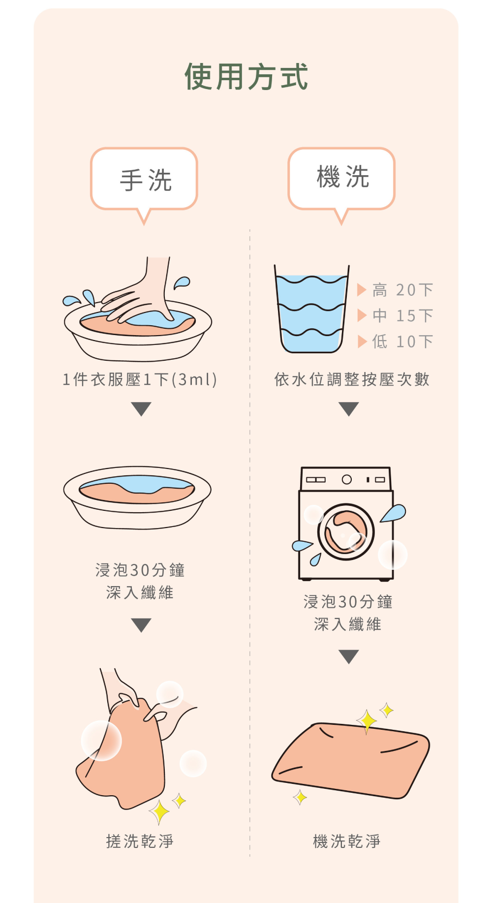 •浸泡30分鐘後再洗滌,去味、抑菌、分解油脂效果更佳!