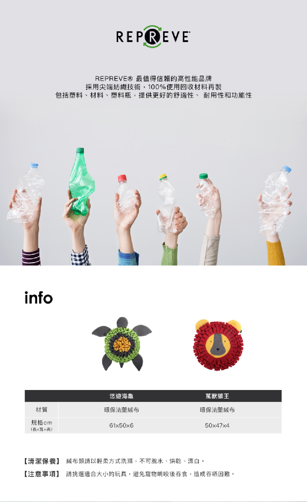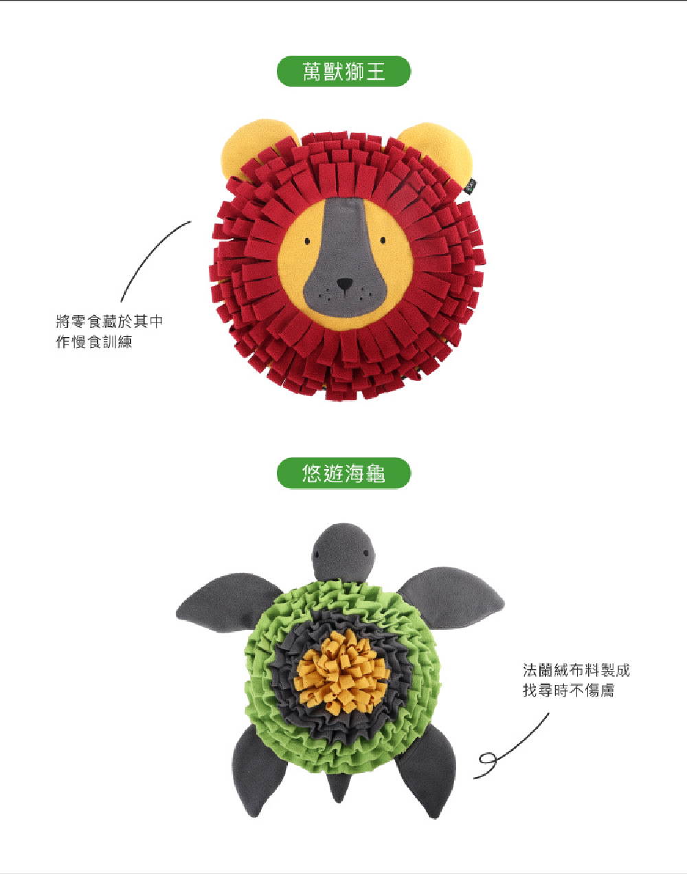 • 將寵物零食、乾糧藏於其中,作慢食訓練盤使用