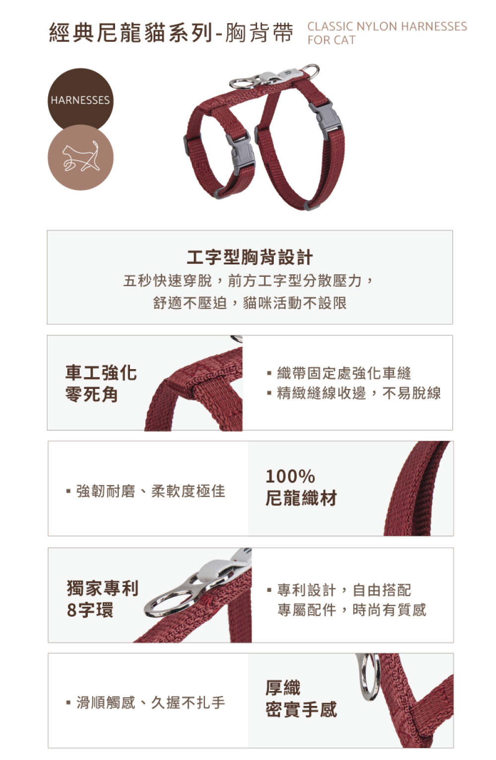 •獨家專利8字環設計,可自由搭配配件,為毛孩打造專屬胸背帶
