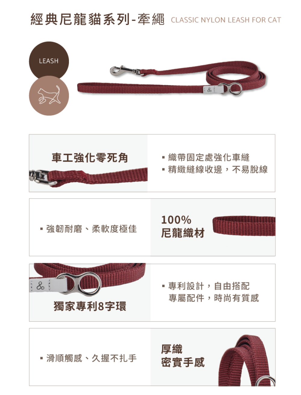 •獨家專利8字環設計,可自由搭配配件,為毛孩打造專屬牽繩