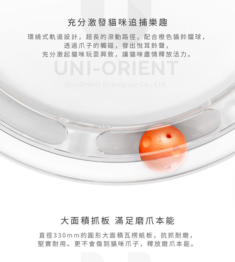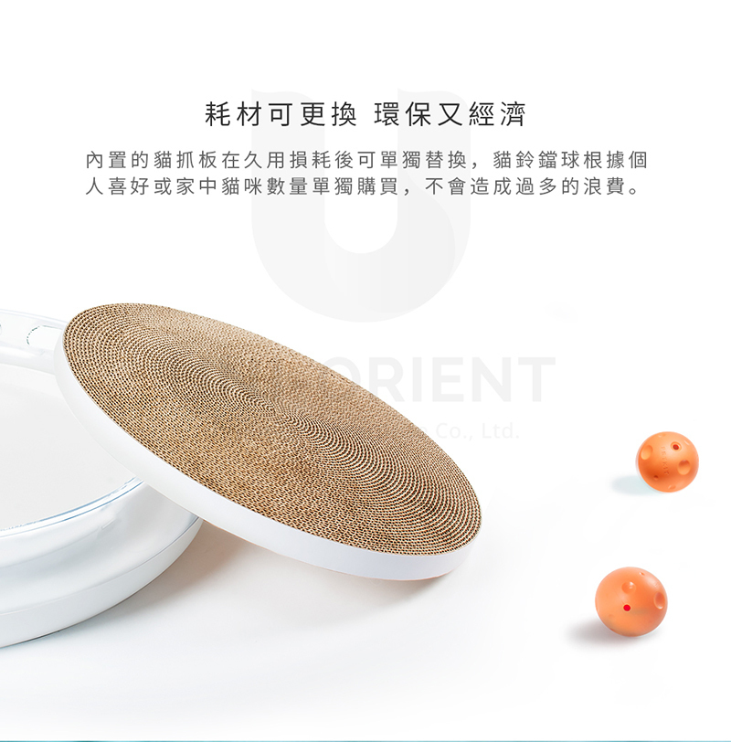 •環繞式軌道球,充分激發貓咪的玩耍興致