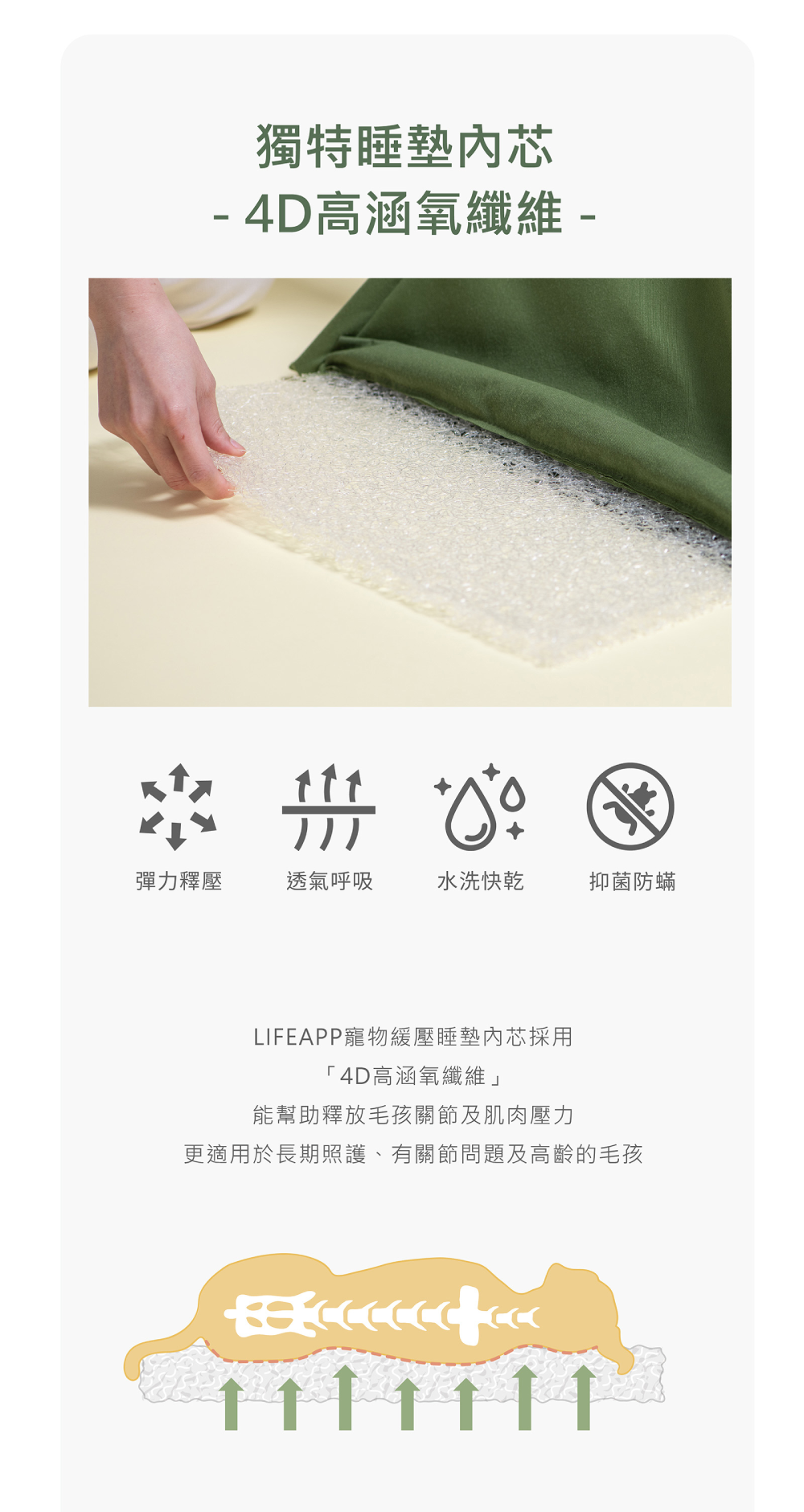 •底部透氣釋壓墊,毛孩久躺不悶熱
