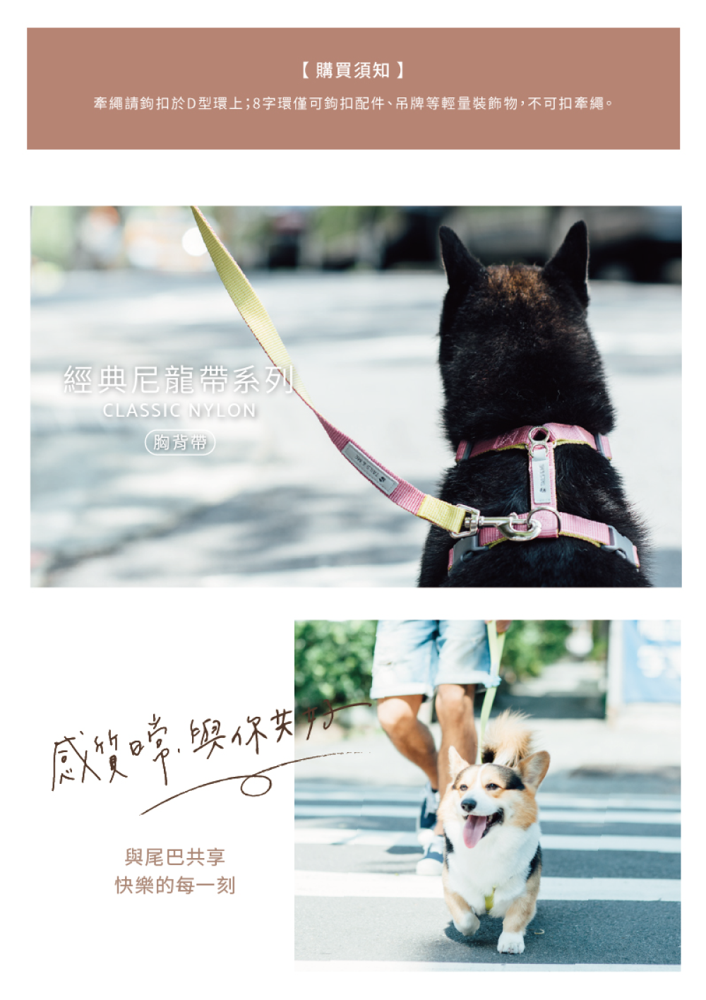 精選強韌、耐磨之尼龍織材,盡情釋放尾巴的充沛活力。