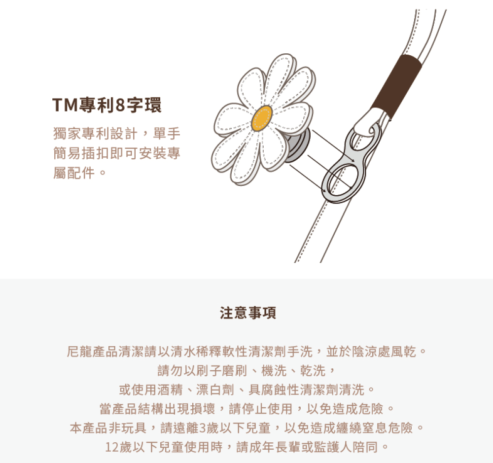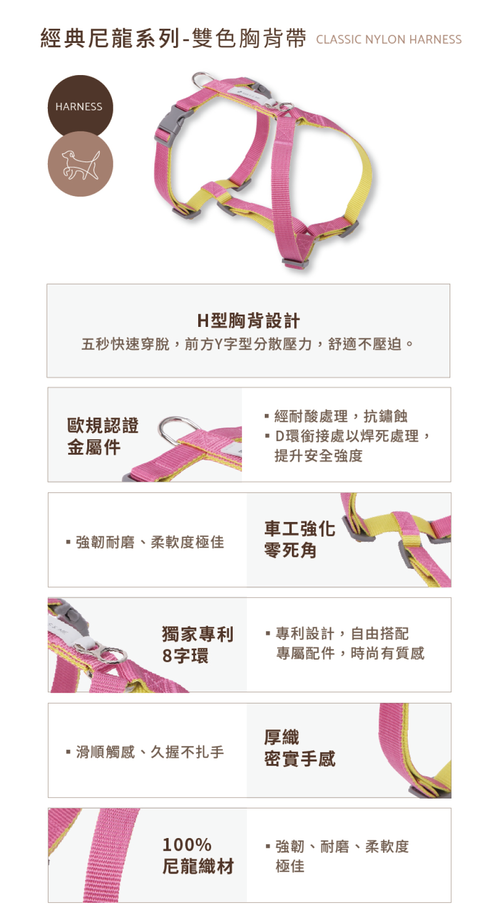 •獨家專利8字環設計,可自由搭配配件,為毛孩打造專屬胸背帶