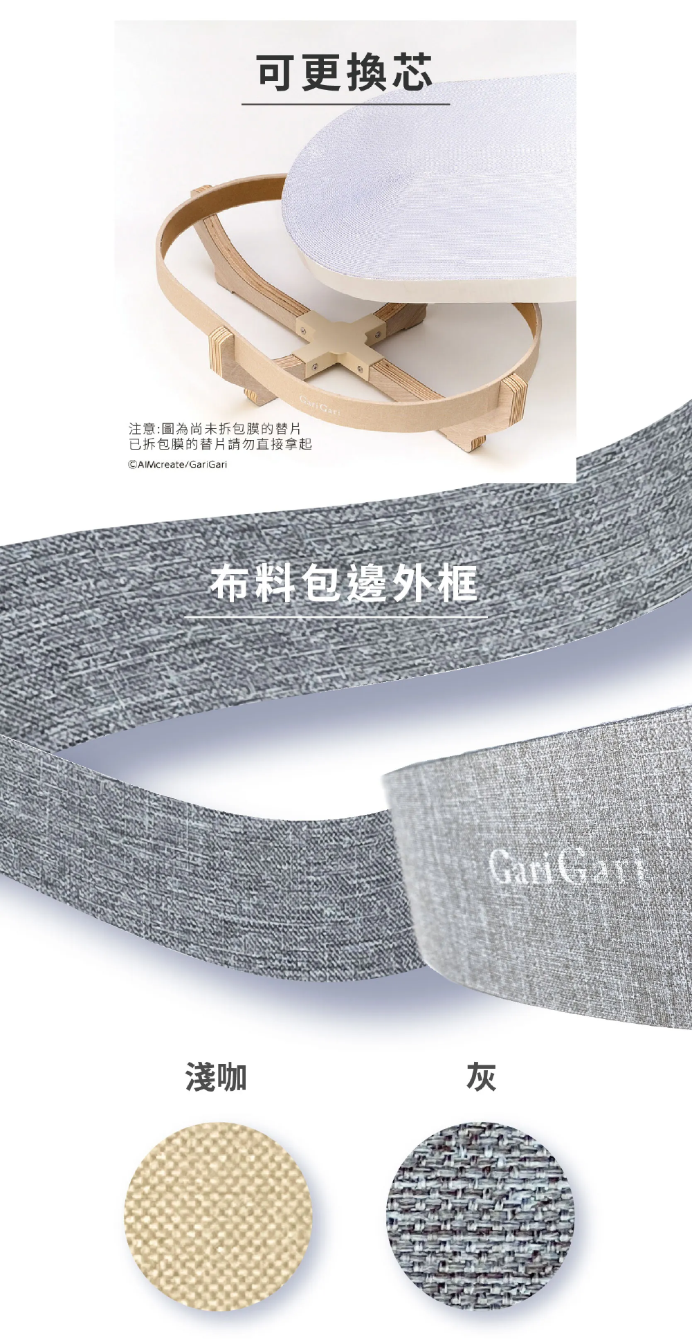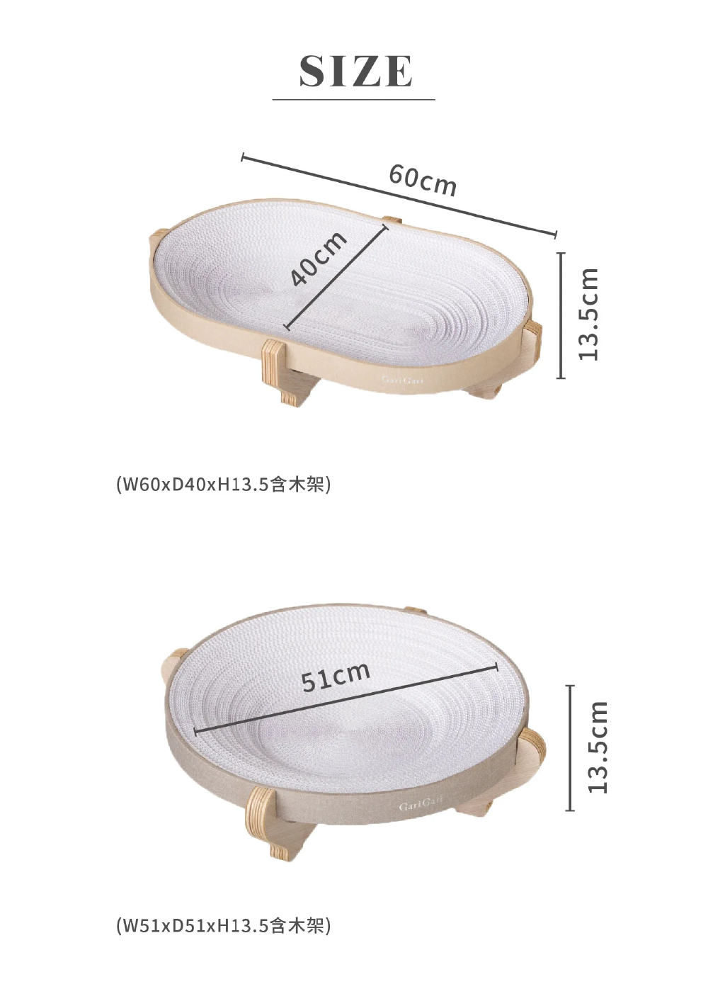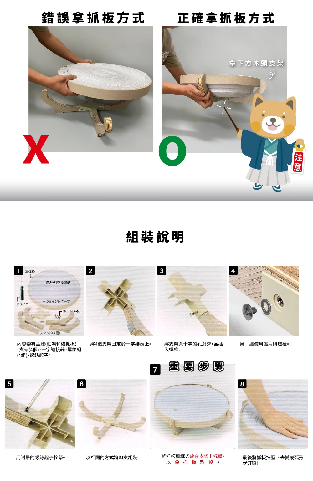 材質:本體/紙、聚酯、磨爪板/白硬紙板、支架/膠合板、接合部件/PP