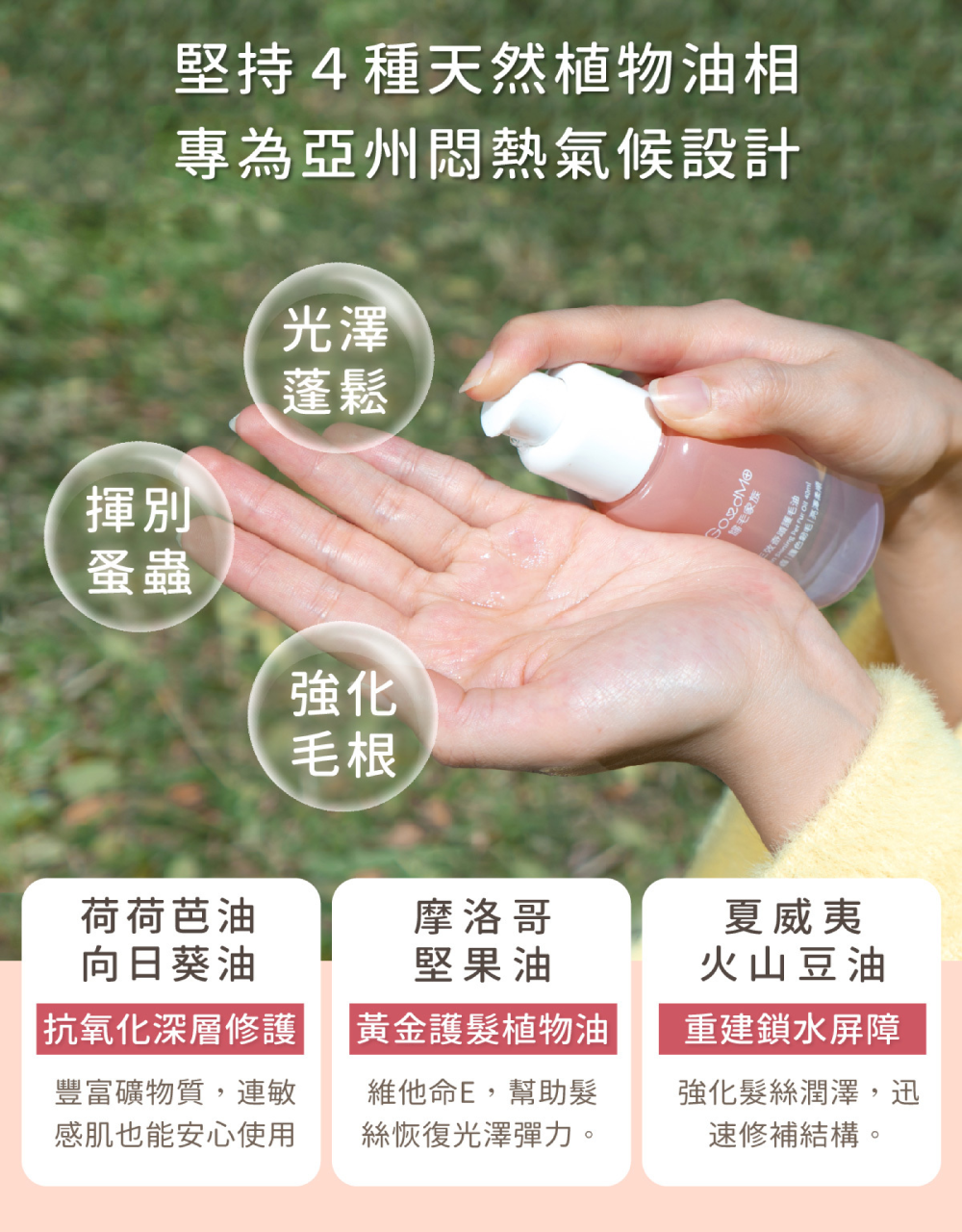 保護毛髮,降低熱傷害,呈現自然柔順光澤