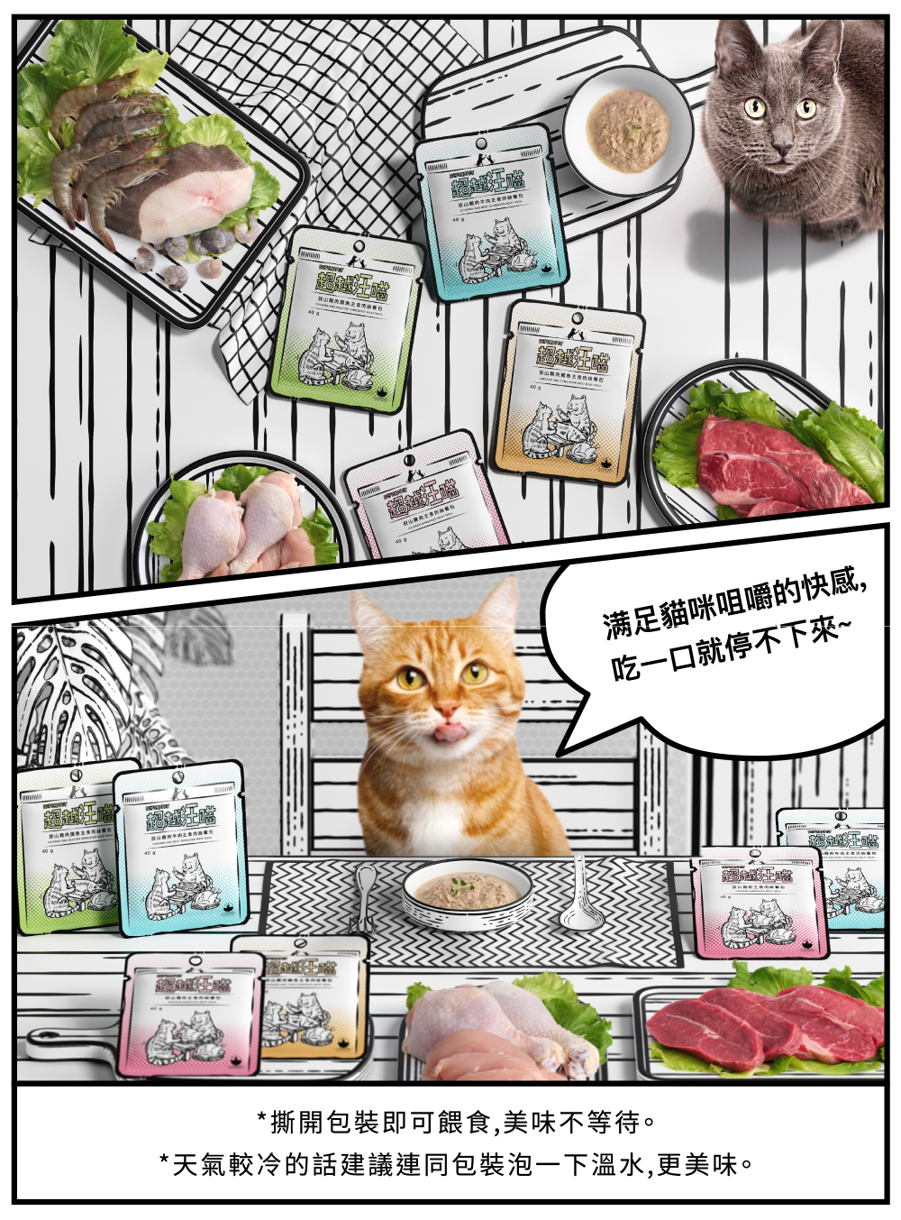 95%鮮肉搭配新鮮蔬果熬煮,撕開包裝即可看到完整肉絲與肉塊 內附滿滿的湯汁,讓貓咪享受咀嚼的快感!